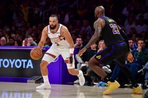体育资讯4月11日讯 NBA常规赛,太阳半场48-57落后湖人。